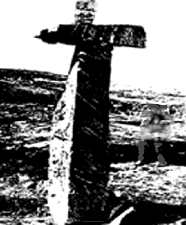 The unique column with a pointer standing near the mouth of Arnaud River has been called Thor's Hammer. The base, standing over eleven feet tall, weighs more than twenty-four men and has a pointer on top. The pointer, weighing as much as three men, aims upriver. The capstone on top of the pointer weighs as much as a man.